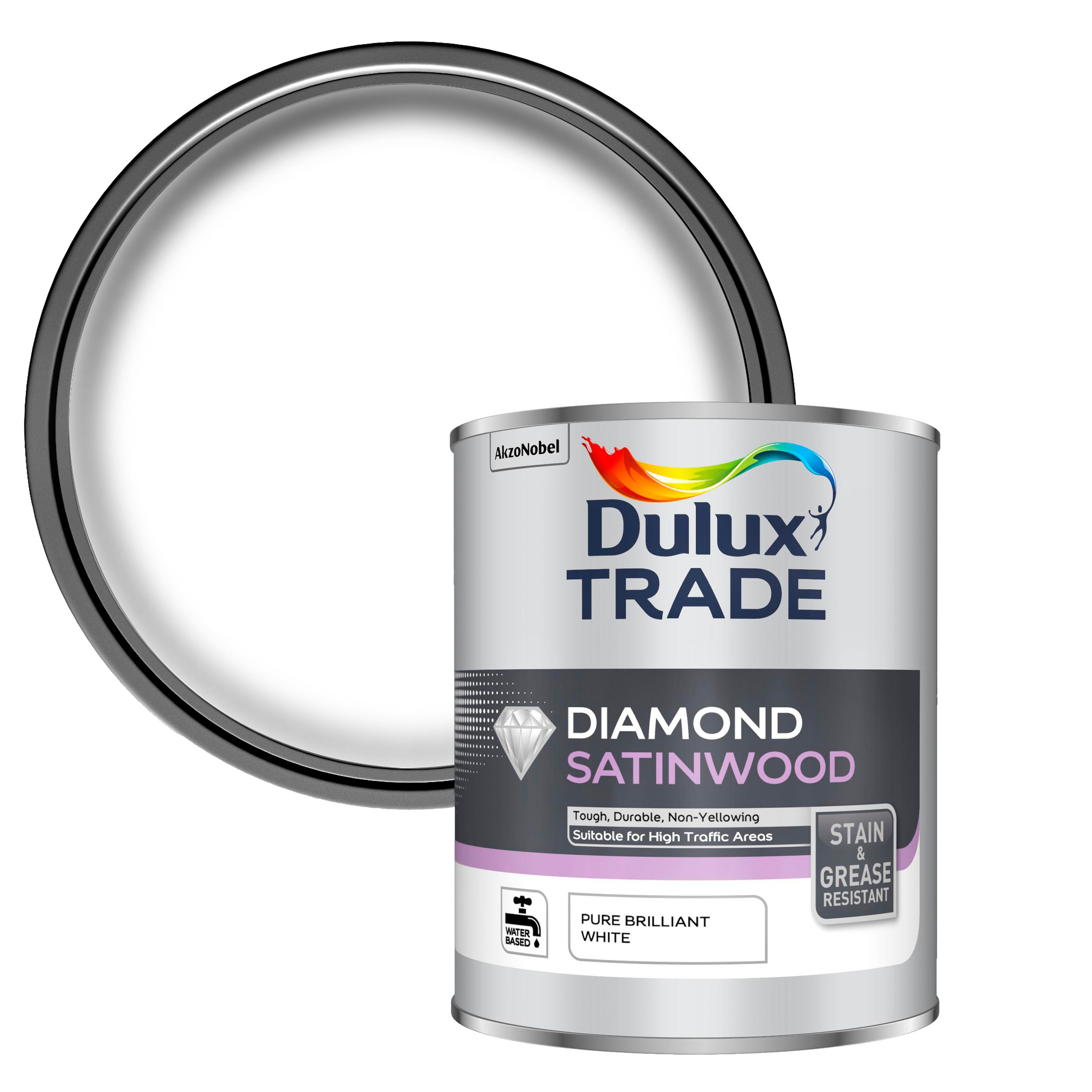 Dulux Trade Diamond Pure brilliant white Satinwood paint 1L